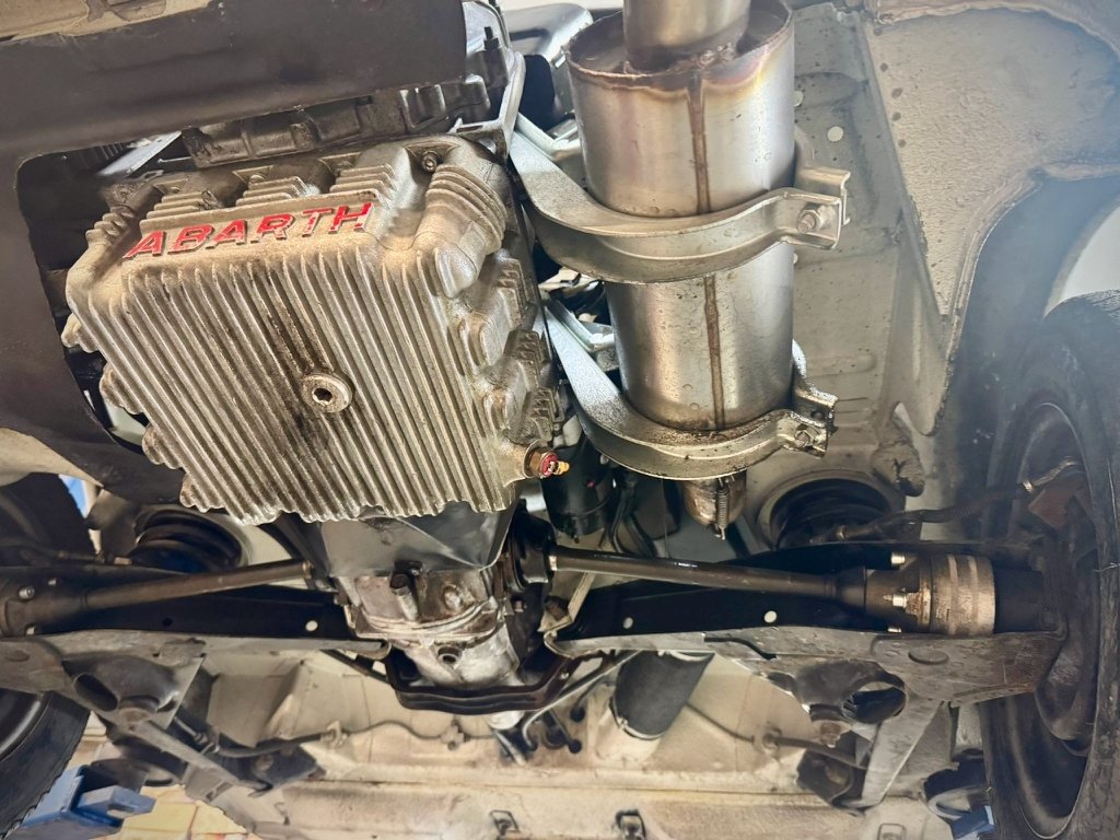 パッと見た印象では、おなじみの赤いABARTHのロゴが目に付くオイルパン。